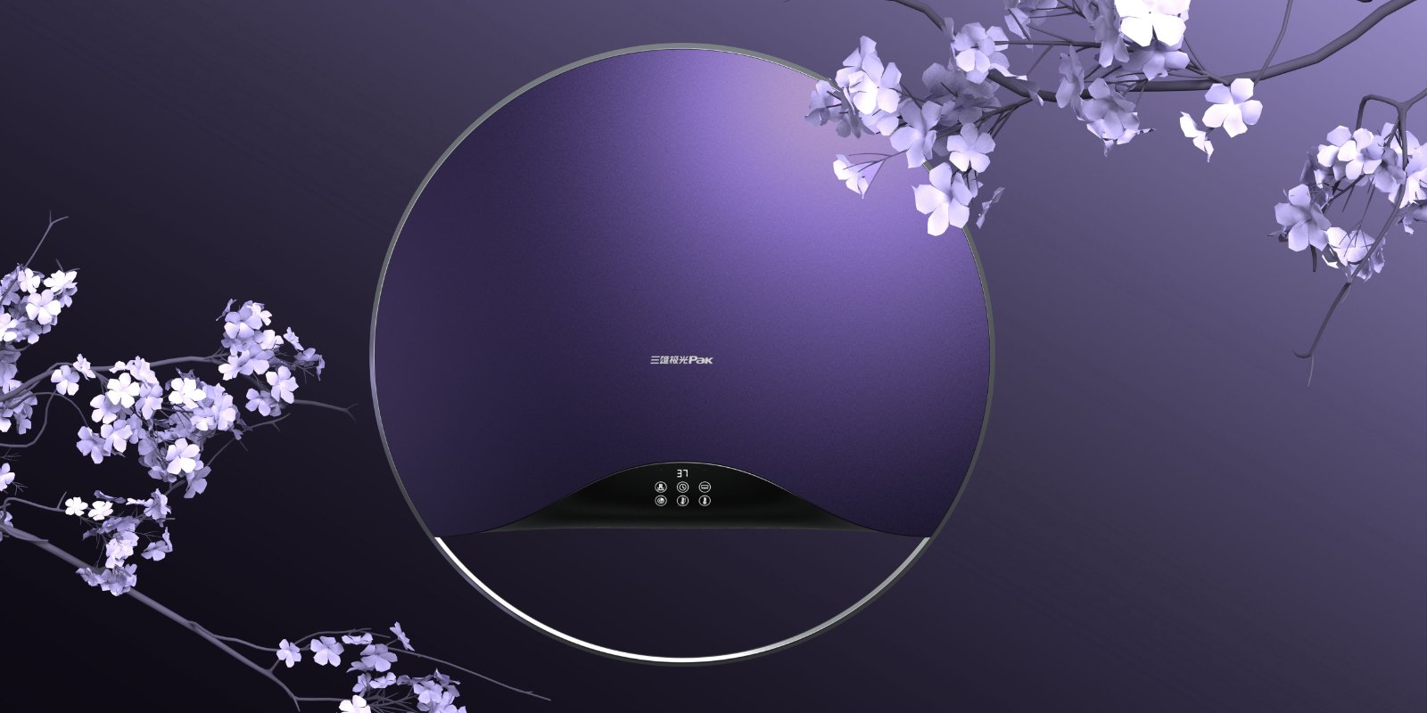 鏤空處象征流水,上方切面作為出風(fēng)口隱藏在觸控面板后,與傳統(tǒng)暖風(fēng)機(jī)相比,這一設(shè)計(jì)使得產(chǎn)品的正面造型在視覺(jué)上顯得更為簡(jiǎn)潔流暢,也規(guī)避了正面外露風(fēng)口容易積灰的弊端。
