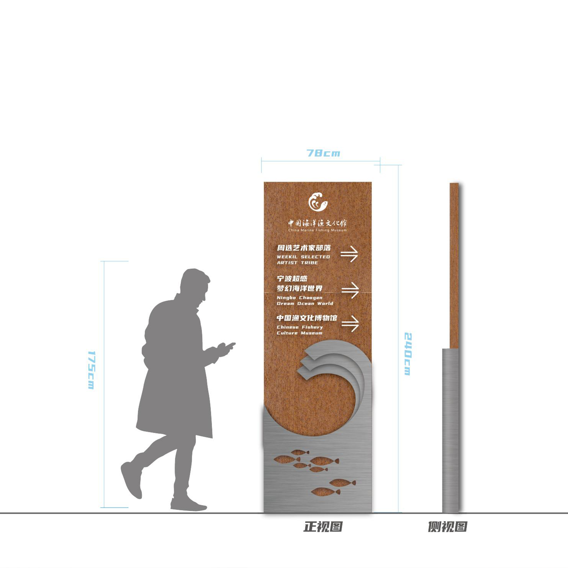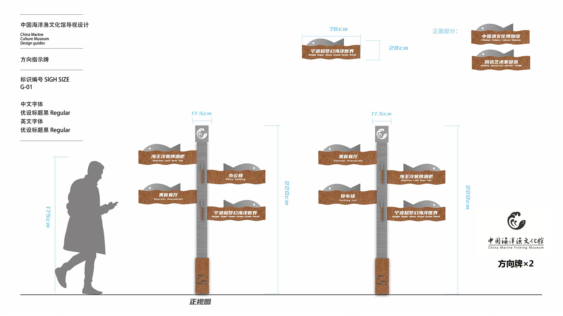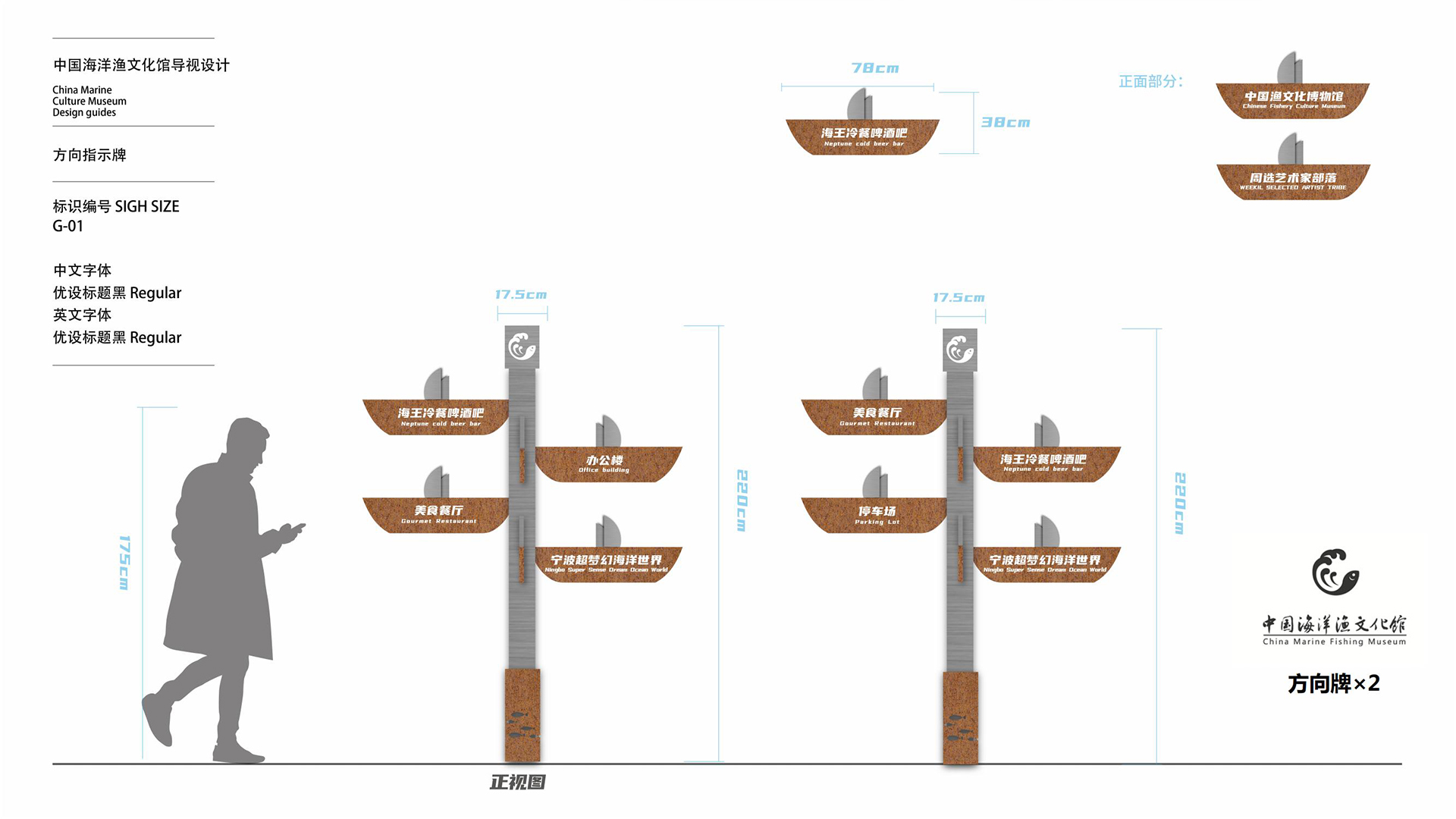 該館以歷史為脈絡,部分還原了漁村舊貌,運用AR、裸眼3D等技術,展現(xiàn)了象山以海為生、與海共榮的海洋文化發(fā)展歷程和我國海洋漁文化的多樣性和豐富性。同時,中國海洋漁文化館充分利用舊廠區(qū)空間,建設了城市會客廳、文創(chuàng)非遺孵化區(qū)等項目。我們團隊將導視設計以漁文化為切入點進行。