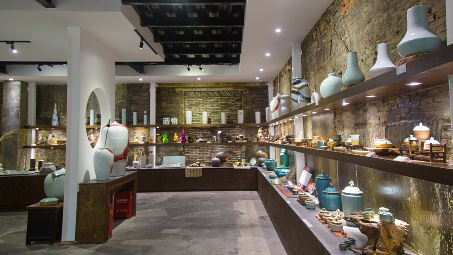 不爭論,不辯解,不過分堅持,讓本性自然釋放,也許有一天我們還會走向自己的反面。如果說平衡是世界的本來面貌,那么節(jié)制就是自我的修行。在欲望似乎沒有盡頭的今天,節(jié)制便顯得彌足珍貴。此項目運中江南園林中曲徑通幽之形,設(shè)計在方寸之間強化了藝術(shù)瓷器的雅致特別,進入后為一個集展示、零售、體驗及咖啡的綜合空間。一扇木門、一個櫥窗、一個景窗、一個圓形門廊,以多樣含蓄的方式與藝術(shù)對話。