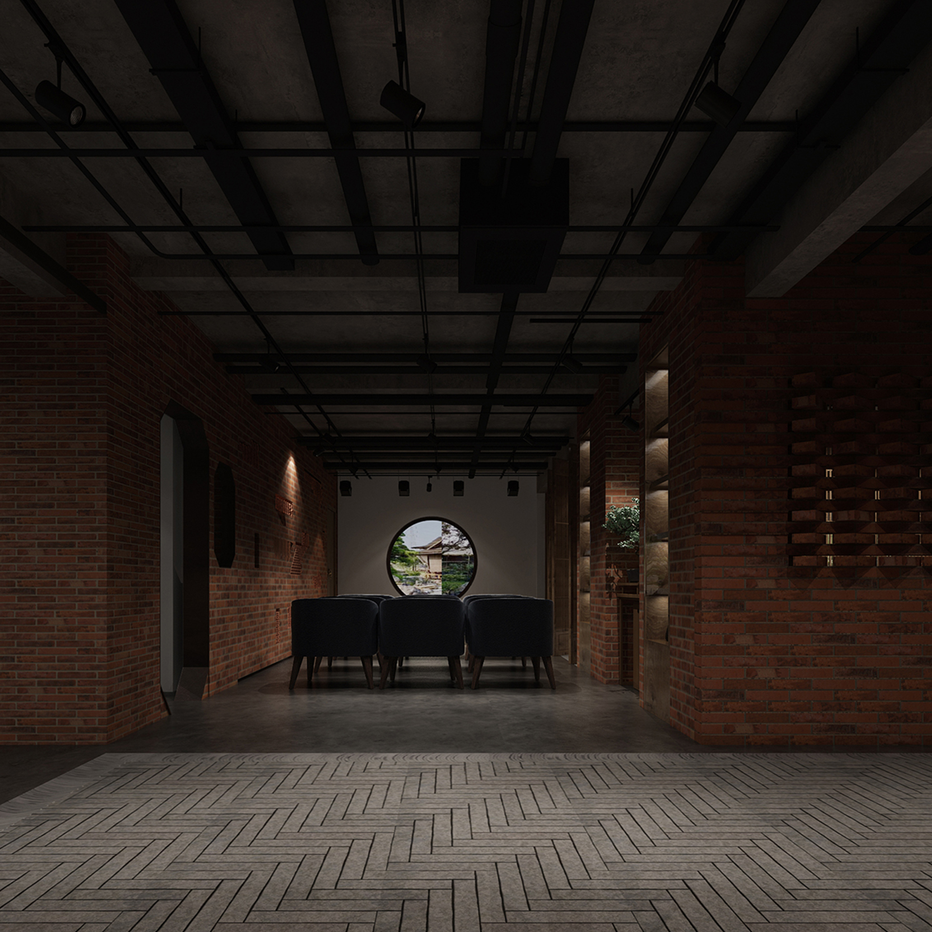 酒吧寬闊的通道讓吧臺、酒墻、沙發(fā)區(qū)分散開來,讓在不同區(qū)域活動的人在碩大的空間中找到自己的歸屬。光在整個空間中扮演著各種角色,有些讓人沉靜,有些讓人興奮。石墻、鵝卵石,最純粹的建筑元素在精心的排布和設(shè)計中發(fā)揮了其美的特點。墻面構(gòu)筑元素采用了泡沫紅陶瓷用來模擬紅磚材料,防水防火?;璋档沫h(huán)境下,人們才真正可以與世隔絕,享受自由。