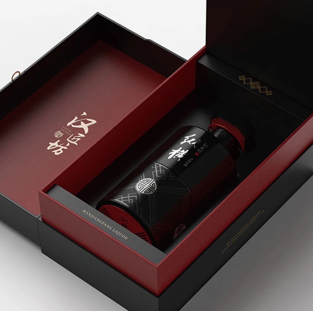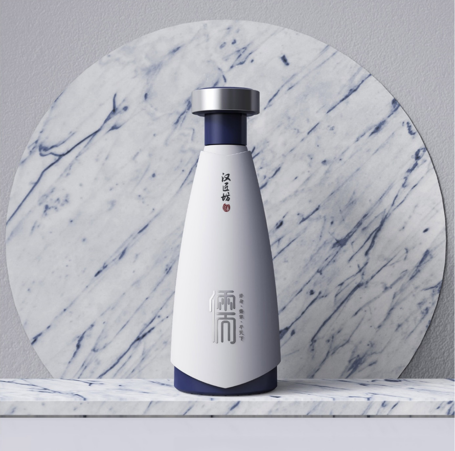 青銅文化和酒文化是中國古代的兩大文明,而青銅酒器是兩者結(jié)合的體現(xiàn),采用青銅酒器常用的回形紋作為印章裝飾,體現(xiàn)了漢匠坊酒的匠心傳承。瓶身底部采用漢服中的交領(lǐng)元素,體現(xiàn)了傳統(tǒng)文化中的對稱學(xué),體現(xiàn)出儒家的中正氣韻。